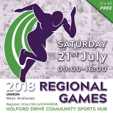 Poster for the second UNISON West Midlands Regional Games in 2017.