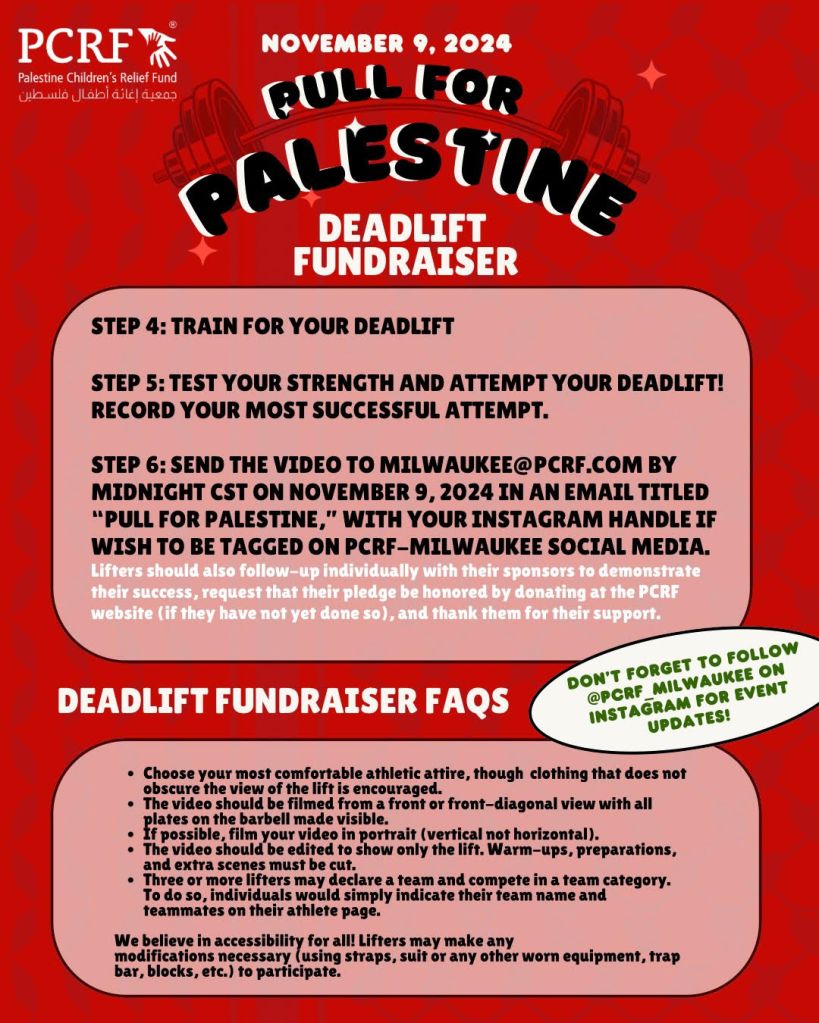 Raising funds for Palestine is my pre-workout. I’m taking part in the Pull for Palestine online virtual deadlift fundraiser. Any amount, large or small, that you can chip in is massively appreciated. Here is my fundraising page.